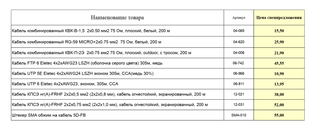 Кабель для систем сигнализации, связи и телекоммуникаций